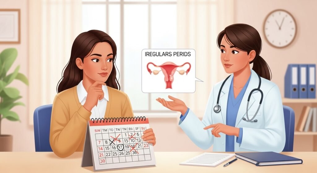 Irregular periods occur when the menstrual cycle does not follow a consistent pattern. Normally, a cycle lasts 21 to 35 days. If periods come too early, too late, or skip months, they are considered irregular.